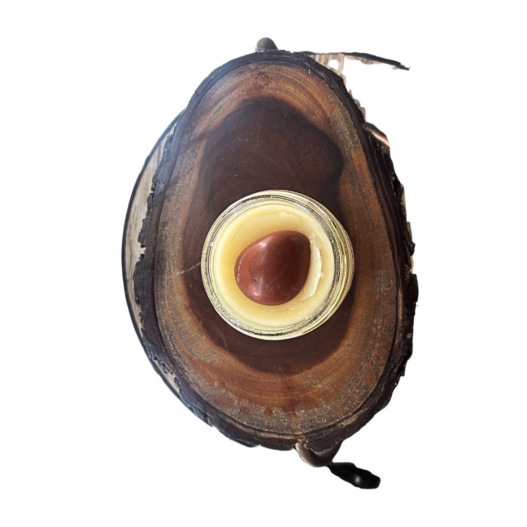 Ingredients: Castor Wax + Shea Butter + Cocoa Butter + Hibiscus + Rose Petals infused Sunflower Seed Oil + Rose Geranium + Angelica Root + Red Jasper Stone