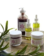 Each product in glass. Highly recommending reusing these bottles for your own personal regimen.
